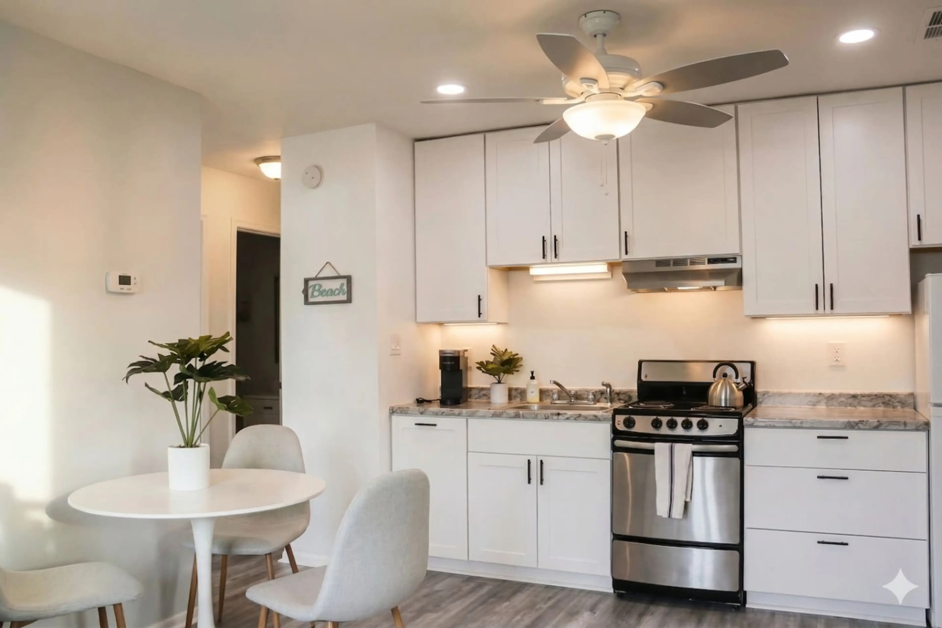 Positive: It’s cute and cozy. Located is a close walk to the beach very conveniently close to restaurants and stores. Everything is a walking distance.